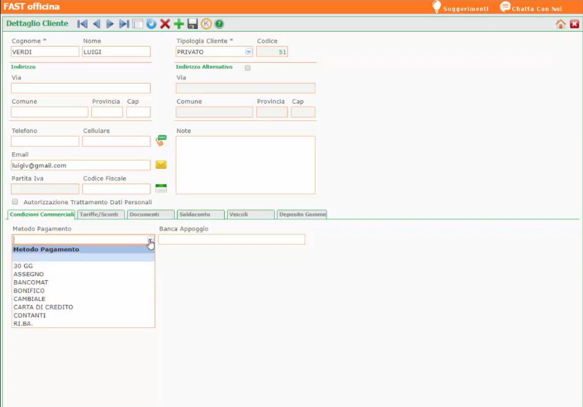 Grazie alle funzionalità di FAST OFFICINA la scheda anagrafica dei clienti diventa un valido strumento di lavoro.